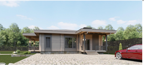 Стильный и уютный одноэтажный дом в стиле фахверк с общей площадью 120м2. Этот проект включает в себя все необходимое для комфортного проживания семьи из 2-4 человек.