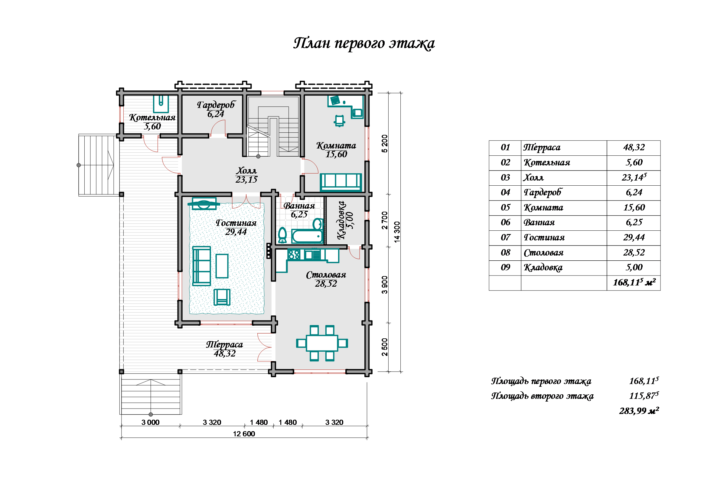 Просторная кухня с интегрированной гостиной-столовой станет центром семейных встреч, а элегантный холл и котельная добавляют практичности в повседневную жизнь. Не забудьте про отдельную крытую террасу — идеальное место для проведения уютных вечеров с близкими.