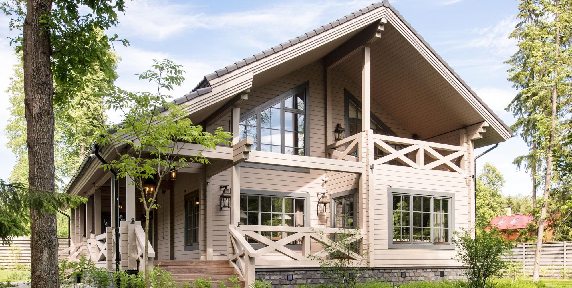 Одна из основных особенностей фахверковых домов – это панорамные окна, которые позволяют наслаждаться природой изнутри. Они создают неповторимую атмосферу единения с окружающей средой.