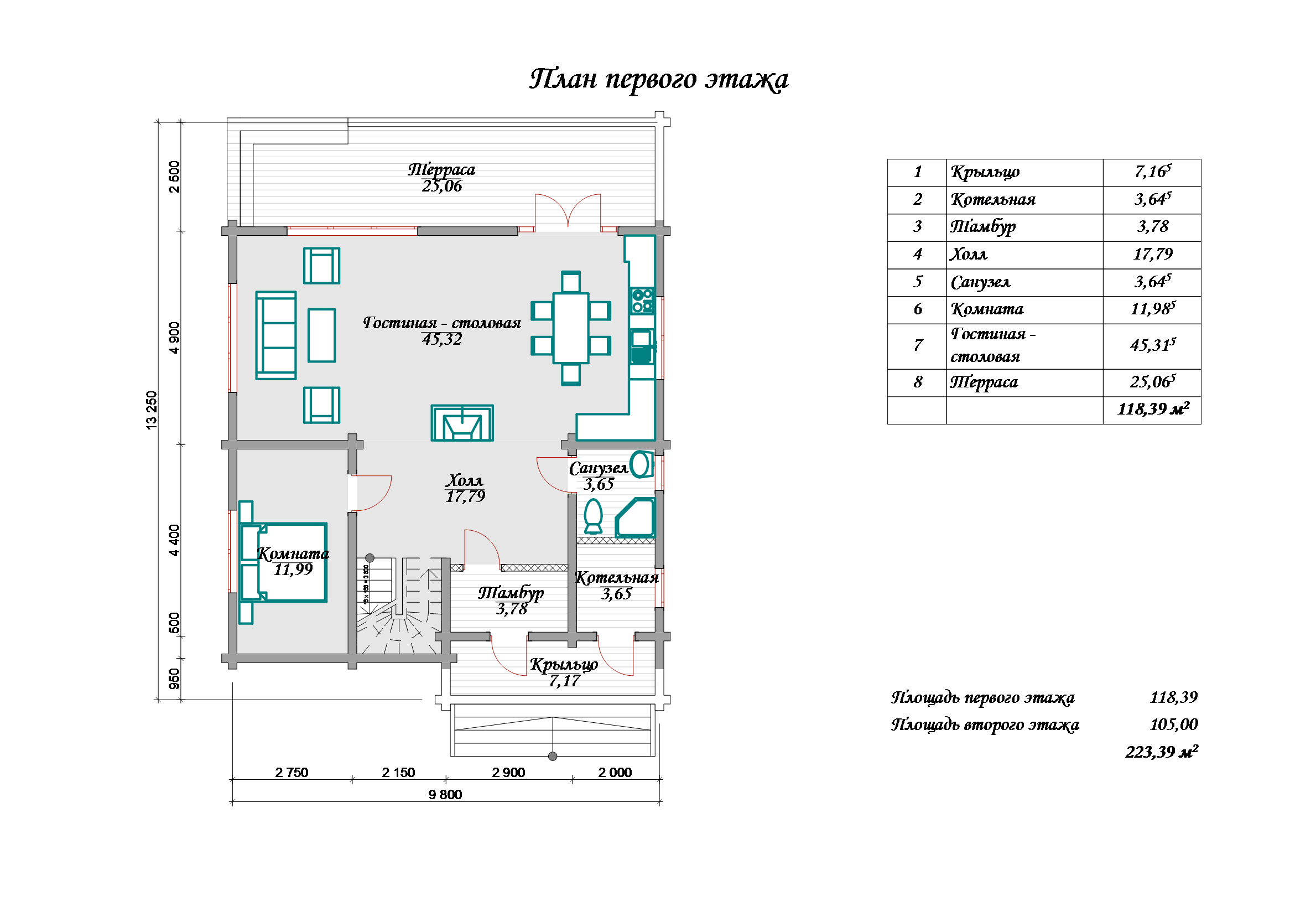 Общая площадь: 175 м²
